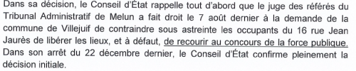 Pourtant, en ce début janvier, Monsieur Le Bohellec répète aux Villejuifois que le Tribunal administratif de Melun, conforté par le Conseil d’État, autorisait le recours à la force. Et, mentant sur ce que dit la justice, il re-demande au préfet d’employer la force. Cela ressemble à un « faux et usage de faux commis par personne dépositaire de l’autorité publique », et c’est assez grave.